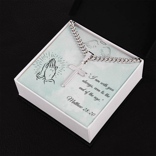 Cuban Link Chain with Engraved Artisan Cross – Personalized Name & Custom Message Gift for any occasion or religious celebration