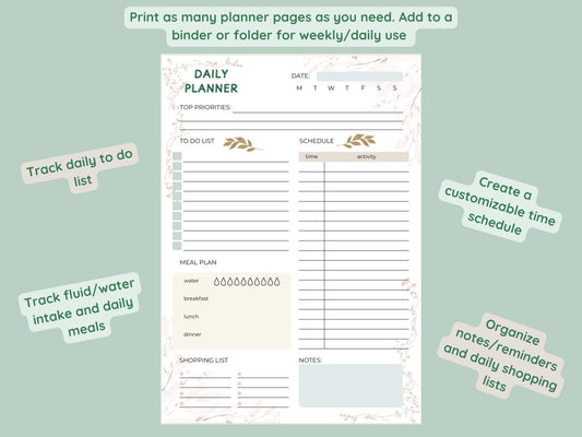 Daily Agenda, Planner, Shopping List and Weekly Meal Planner with Grocery List, To Do list Template, Digital Print for Busy Moms and Dads